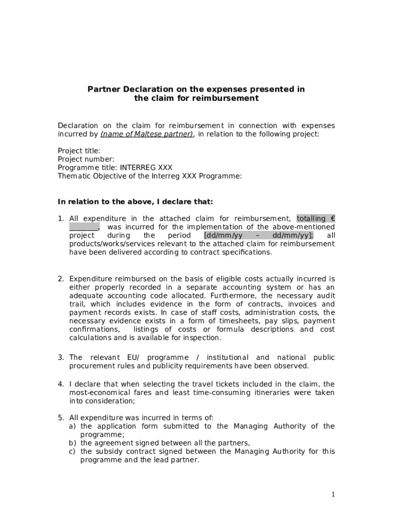 The Settling Expense Claims by Partners is a writable document that has to be completed and signed for certain purposes. Next, it is furnished to the actual addressee to provide specific details and data. The completion and signing is possible in hard copy by hand or using a suitable solution e. g. PDFfiller. These applications help to submit any PDF or Word file without printing them out. It also allows you to edit it according to your requirements and put legit e-signature. Once you're good, the user sends the Settling Expense Claims by Partners to the recipient or several ones by mail and even fax. PDFfiller has a feature and options that make your blank printable. It includes a variety of settings for printing out appearance. It doesn't matter how you deliver a form - physically or electronically - it will always look neat and firm. To not to create a new editable template from scratch all the time, make the original file into a template. After that, you will have a rewritable sample.