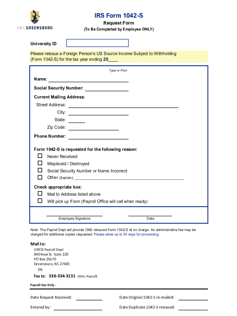 Get the free Irs Form 1042-s Request Form - payroll uncg