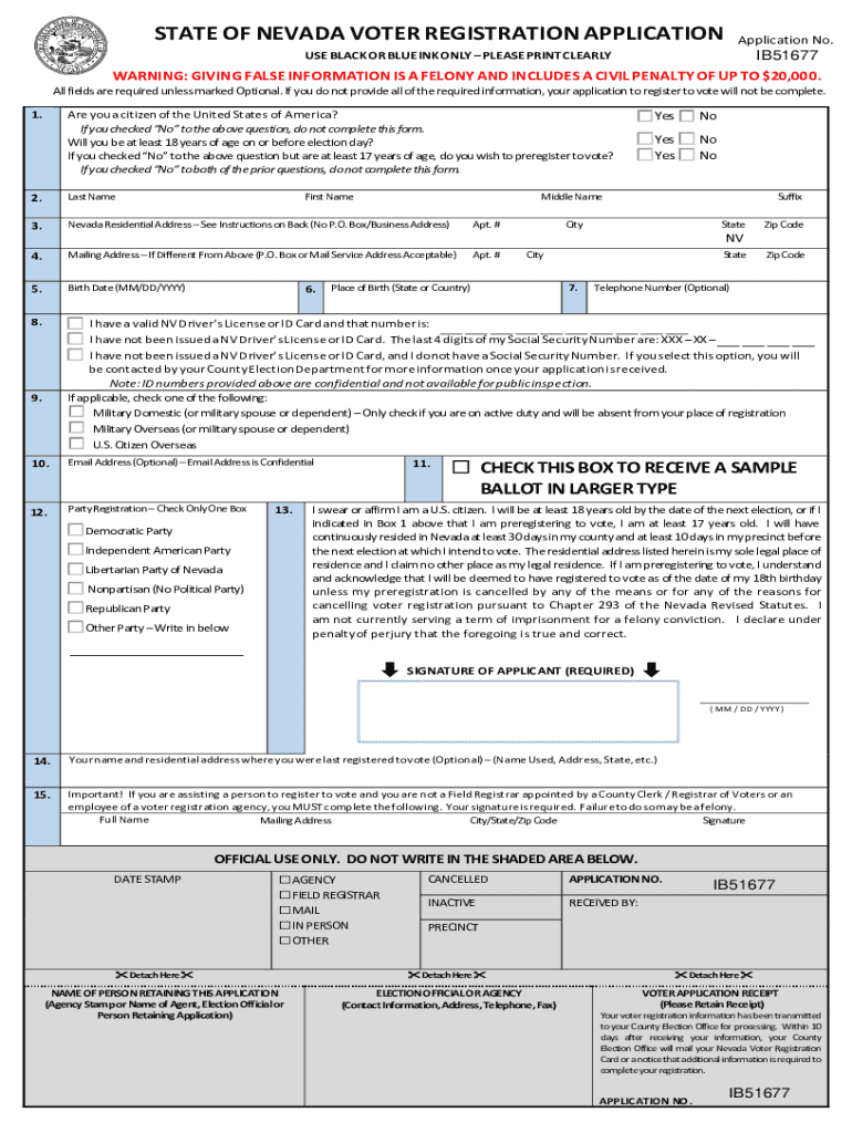 Complete the Nevada Voter Registration Application to register or preregister to vote. Ensure accurate information to avoid penalties. Deadlines apply.