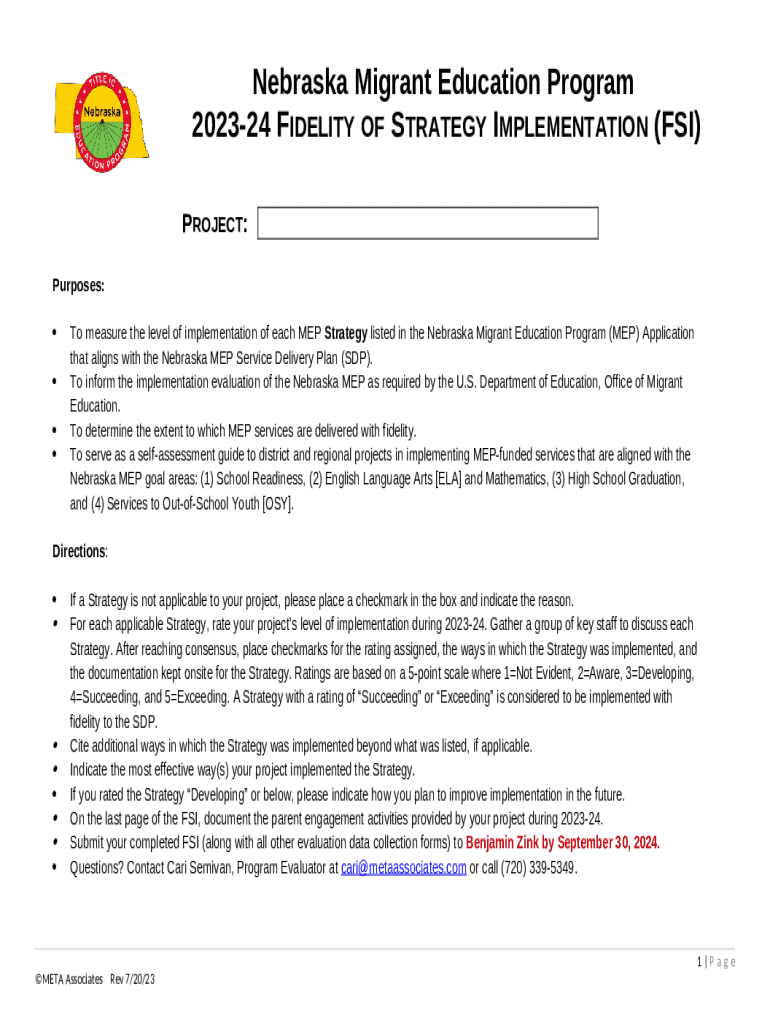 Instructions for the Nebraska Migrant Education Program 2023-24 Fidelity of Strategy Implementation form