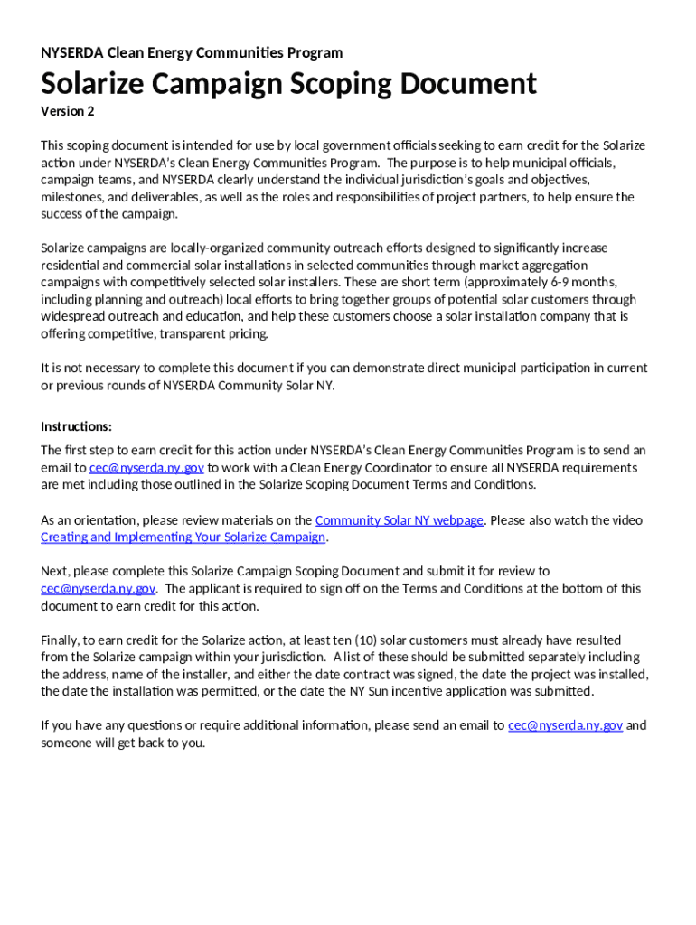 Template Nyserda Clean Energy Communities Program Solarize Campaign Scoping Document instructions