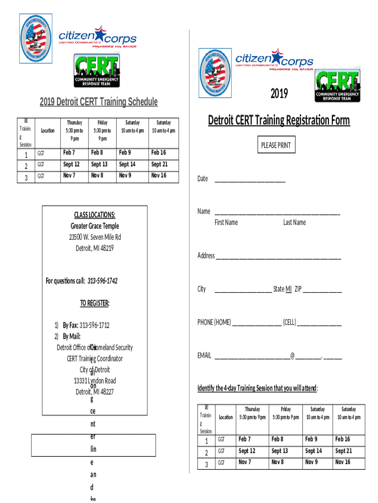 The Detroit Cert Training Registration is a document that has to be filled-out and signed for specific purpose. Then, it is provided to the actual addressee to provide some details of any kinds. The completion and signing is available in hard copy or with an appropriate solution e. g. PDFfiller. These tools help to send in any PDF or Word file without printing them out. While doing that, you can edit its appearance depending on your requirements and put a legal e-signature. Once finished, the user sends the Detroit Cert Training Registration to the respective recipient or several of them by email and even fax. PDFfiller includes a feature and options that make your Word template printable. It includes various options when printing out. It does no matter how you'll file a form - physically or by email - it will always look well-designed and organized. To not to create a new editable template from the beginning all the time, turn the original file into a template. Later, you will have a customizable sample.