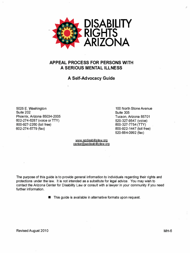 This comprehensive self-advocacy guide provides essential information on the appeal process for individuals with serious mental illnesses, detailing rights, procedures, and essential contacts.