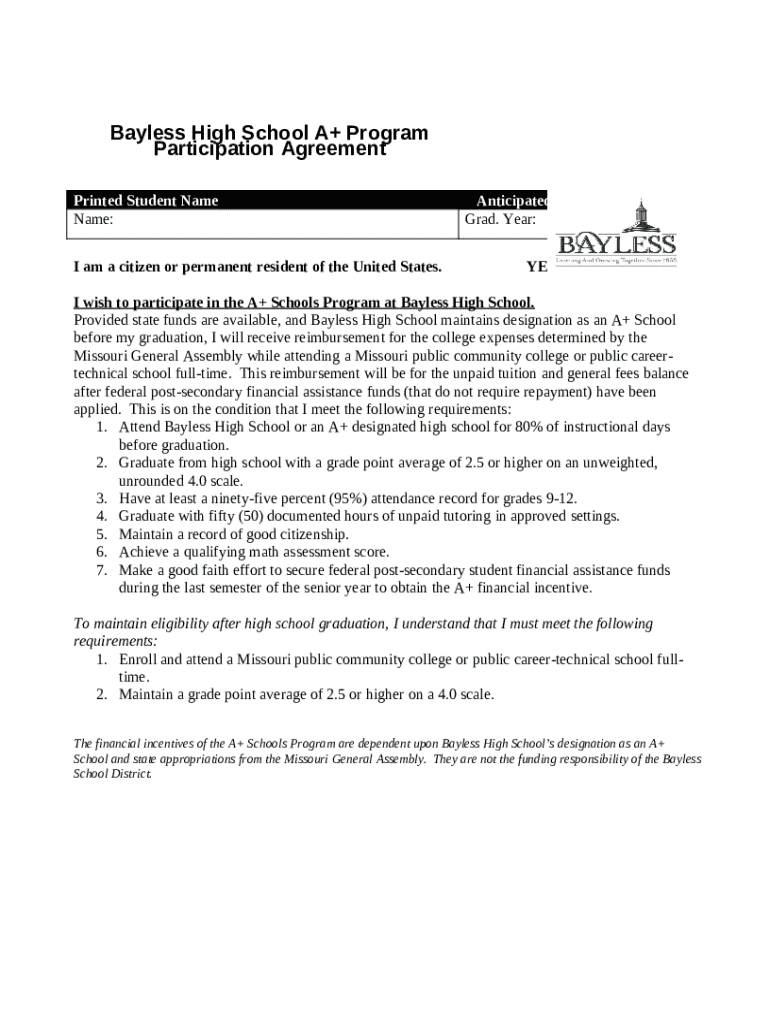 The a+ Schools Program Citizenship Guidelines is a fillable form in MS Word extension required to be submitted to the specific address in order to provide specific information. It needs to be filled-out and signed, which may be done in hard copy, or via a particular software e. g. PDFfiller. This tool allows to complete any PDF or Word document directly from your browser (no software requred), customize it depending on your needs and put a legally-binding electronic signature. Right after completion, user can send the a+ Schools Program Citizenship Guidelines to the appropriate recipient, or multiple recipients via email or fax. The blank is printable as well because of PDFfiller feature and options offered for printing out adjustment. Both in electronic and physical appearance, your form will have a neat and professional look. Also you can turn it into a template to use it later, so you don't need to create a new blank form over and over. All that needed is to edit the ready form.