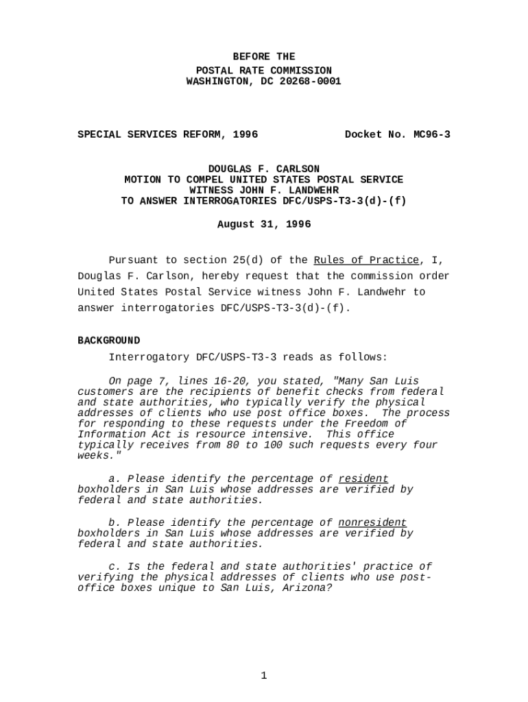 The usps-motion.pdf is a writable document which can be completed and signed for specified purpose. Then, it is furnished to the relevant addressee to provide specific info of any kinds. The completion and signing can be done manually in hard copy or via an appropriate solution e. g. PDFfiller. These tools help to send in any PDF or Word file online. It also lets you customize its appearance according to your needs and put a legal e-signature. Once you're good, the user sends the usps-motion.pdf to the respective recipient or several ones by mail or fax. PDFfiller has a feature and options that make your template printable. It has a number of options when printing out appearance. It doesn't matter how you send a form after filling it out - physically or by email - it will always look well-designed and clear. To not to create a new file from scratch again and again, turn the original Word file as a template. Later, you will have a customizable sample.