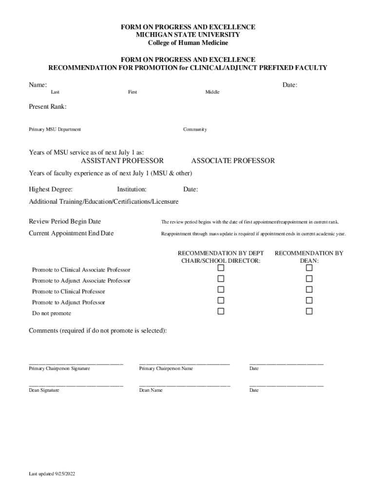 RECOMMENDATION FOR PROMOTION for CLINICAL/ADJUNCT PREFIXED FACULTY