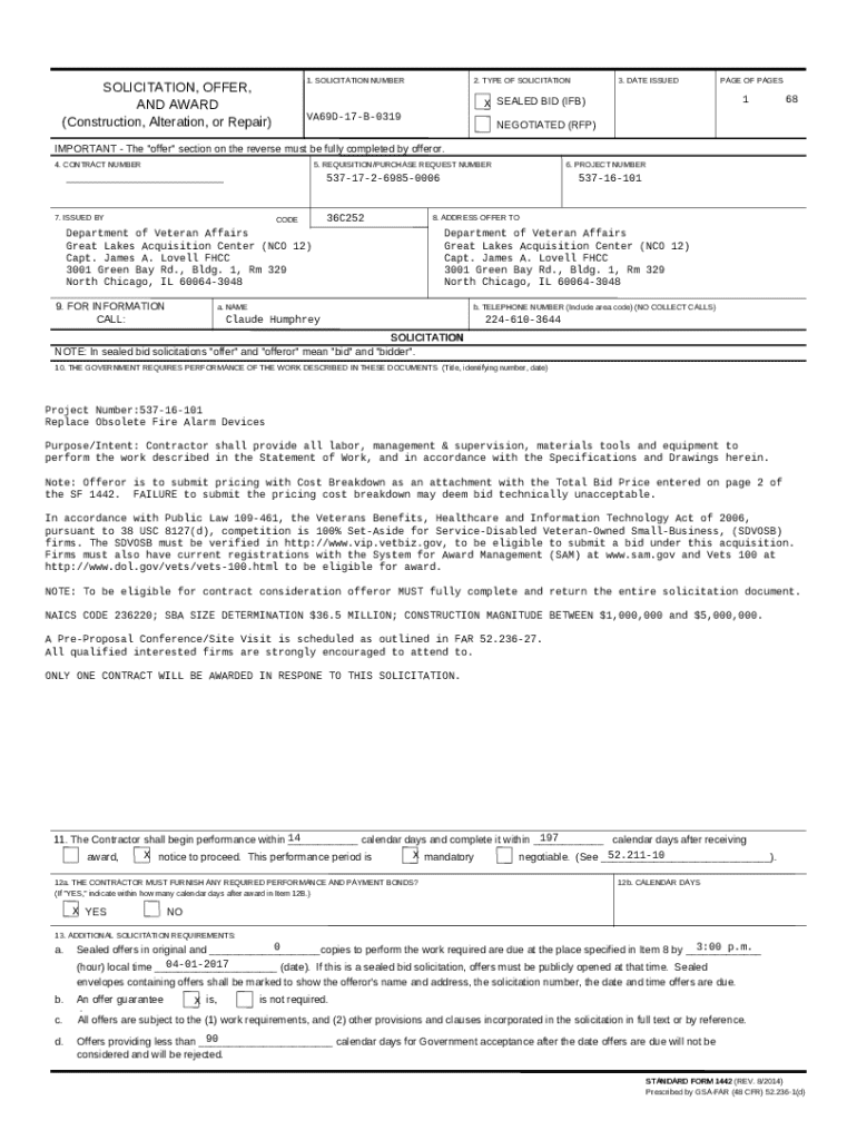 Instructions for the form Replace Obsolete Fire Alarm Devices, 537-16-101 - Solicitation ...