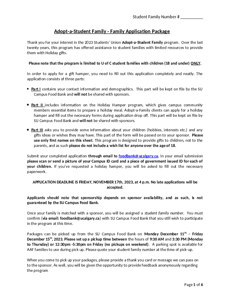 Adopt-a-Student Family - Family Application Package: frequently asked questions