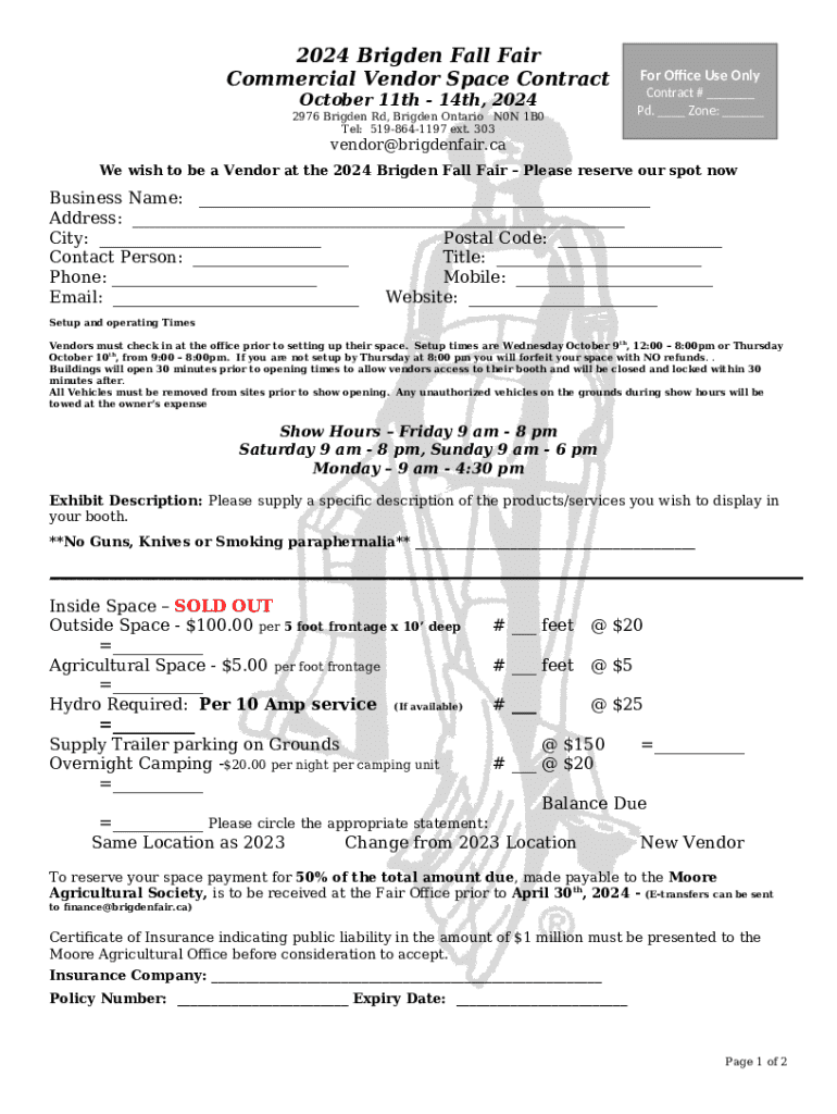 The Jazz In The Country - Vendor Agreement 2024 is a fillable form in MS Word extension required to be submitted to the specific address in order to provide certain info. It has to be completed and signed, which may be done in hard copy, or via a particular software like PDFfiller. This tool helps to fill out any PDF or Word document directly in your browser, customize it depending on your purposes and put a legally-binding e-signature. Once after completion, the user can easily send the Jazz In The Country - Vendor Agreement 2024 to the appropriate person, or multiple individuals via email or fax. The blank is printable as well thanks to PDFfiller feature and options proposed for printing out adjustment. Both in digital and in hard copy, your form will have a neat and professional appearance. You can also save it as the template for further use, without creating a new blank form over and over. All you need to do is to edit the ready document.