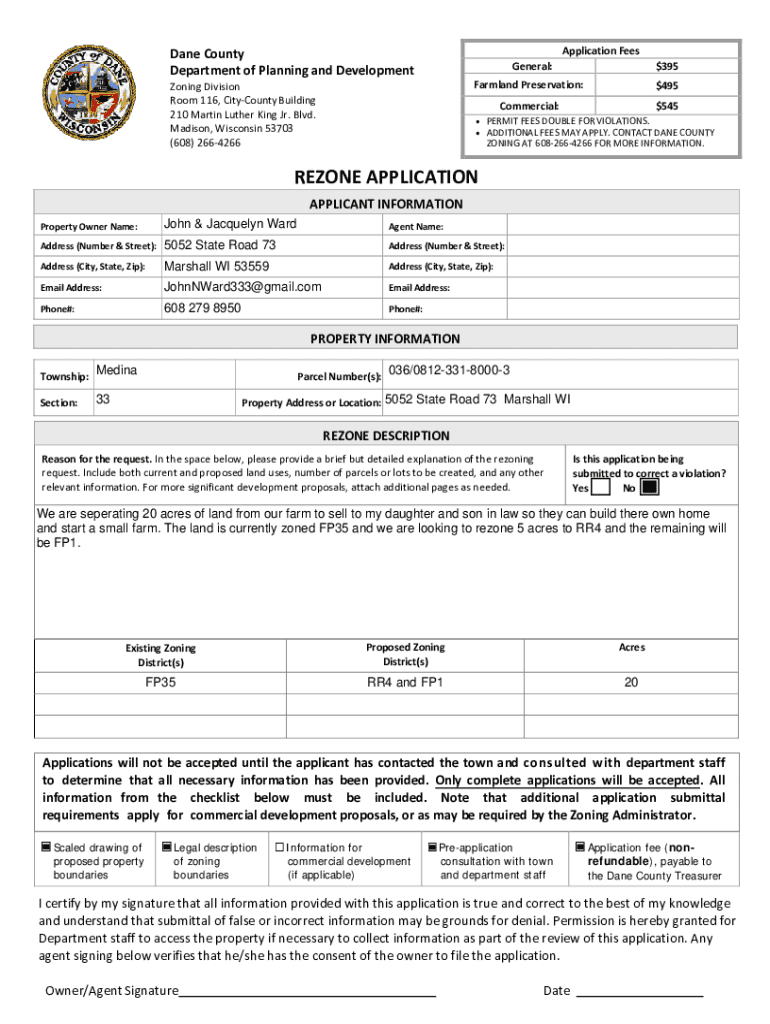 Any property owner or authorized agent of the property owner who wishes to change the zoning designation of a property in Dane County is required to file a rezone petition.