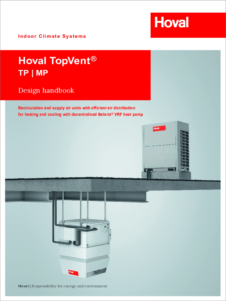 Indoor Climate SystemsHoval TopVent TP | MPDesign handbook Recirculation and supply air units with efficient air distribution for heating and cooling with decentralised Belaria VRF heat pumpHoval | Responsibility for energy and environmentTopVent TP | MP ContentHoval Indoor Climate Systems3AEfficient. Flexible. Reliable.TopVent TP7BRecirculation units with efficient air distribution for heating and cooling spaces up to 25 m in height with decentralised heat pumpTopVent