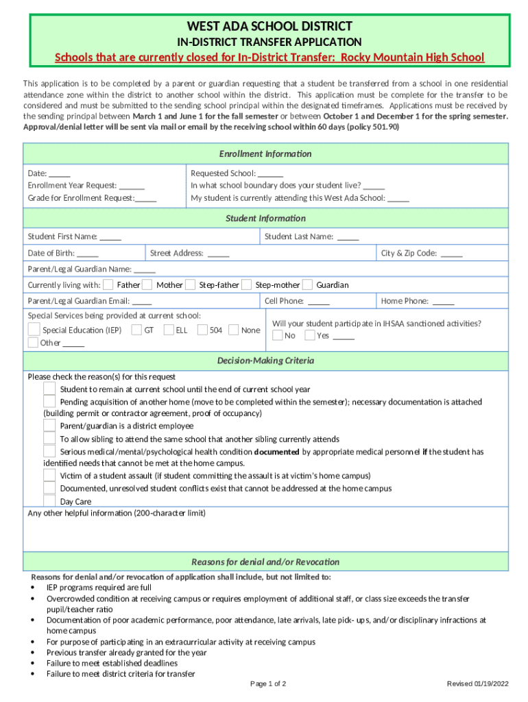 Schools that are currently closed for In-District Transfer:Rocky Mountain High School template instructions