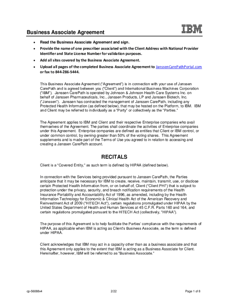 Review and sign the Business Associate Agreement for Janssen CarePath, ensuring compliance with HIPAA when sharing Protected Health Information.