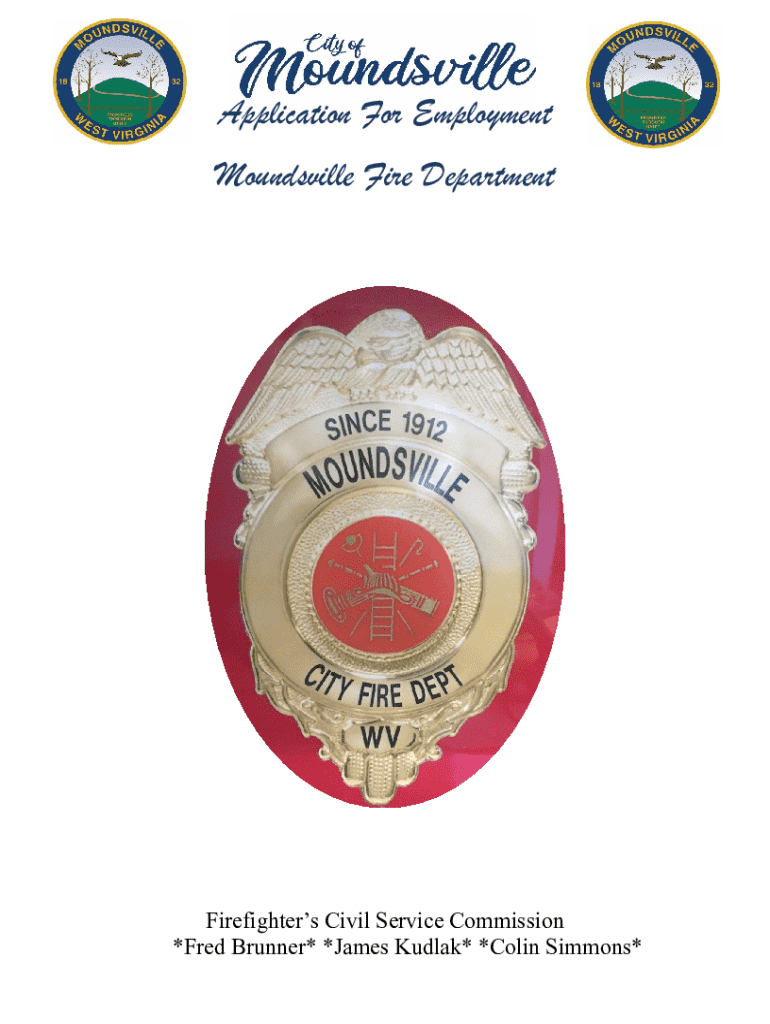 Apply for the Firefighter position with Moundsville Fire Department. Complete the required forms for eligibility in the Civil Service. Benefits included.