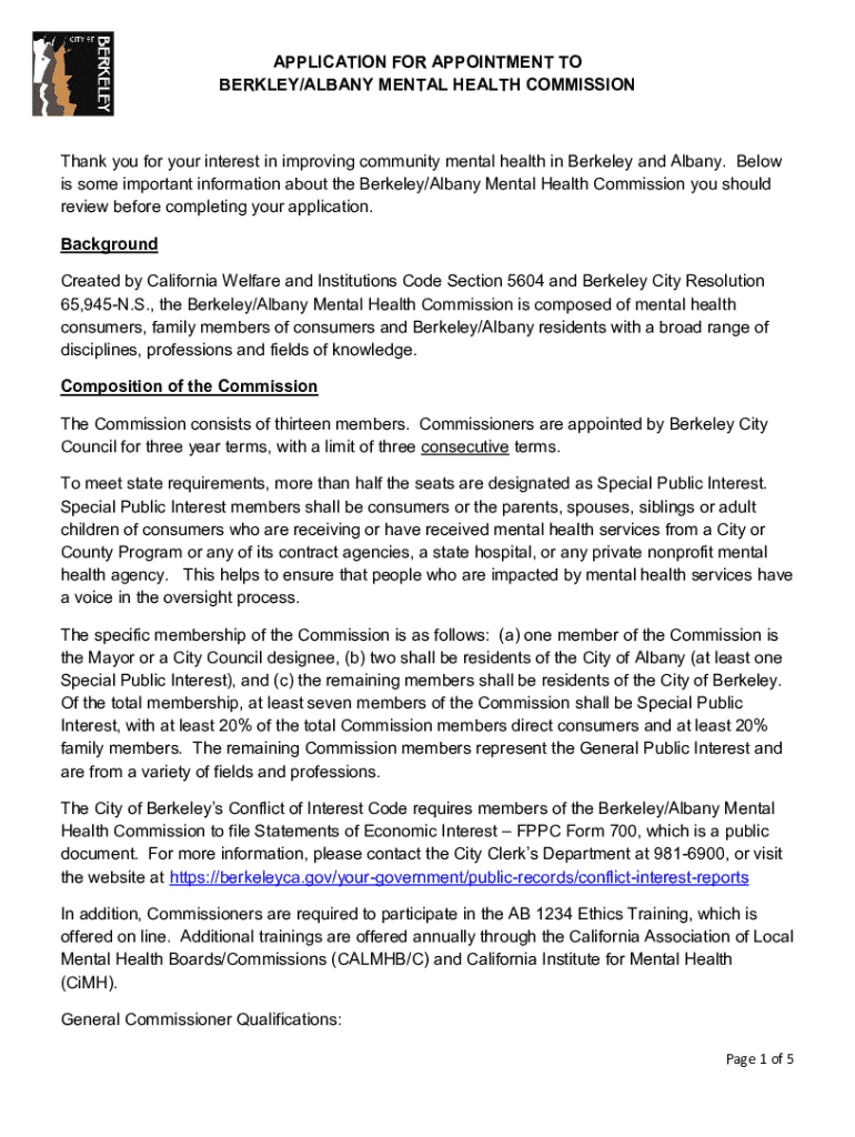 Apply for the Berkley/Albany Mental Health Commission to support community mental health initiatives. Ensure your application meets the necessary qualifications.