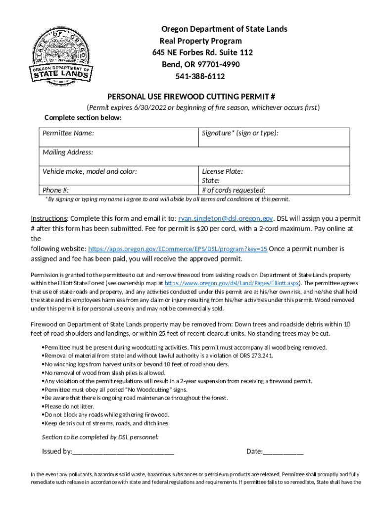Instructions for the form BLM Firewood Permits OnlineBureau of Land Management