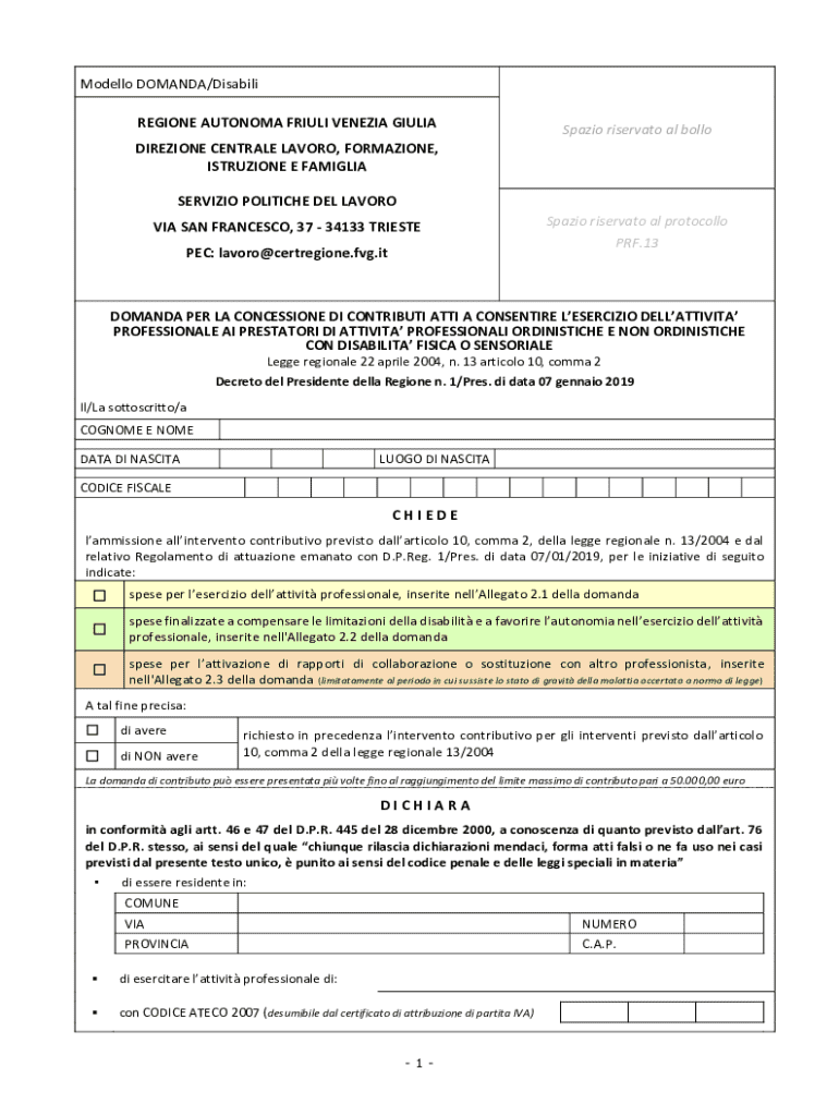 Model lo DEMAND/Disability REGION AUTONOMY FRILLS VENETIAN GIULIASpazio reservation all bolloDIREZIONE CENTRAL FAVOR, FORMATION, INTRUSION E FAMILIAR SERVILLO POLITICAL DEL FAVOR VIA SAN FRANCESCO,