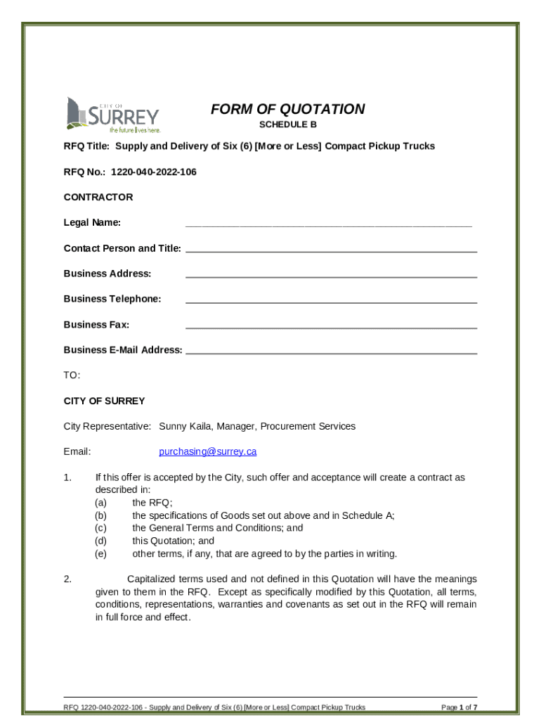 What is of Quotation Schedule B Form?