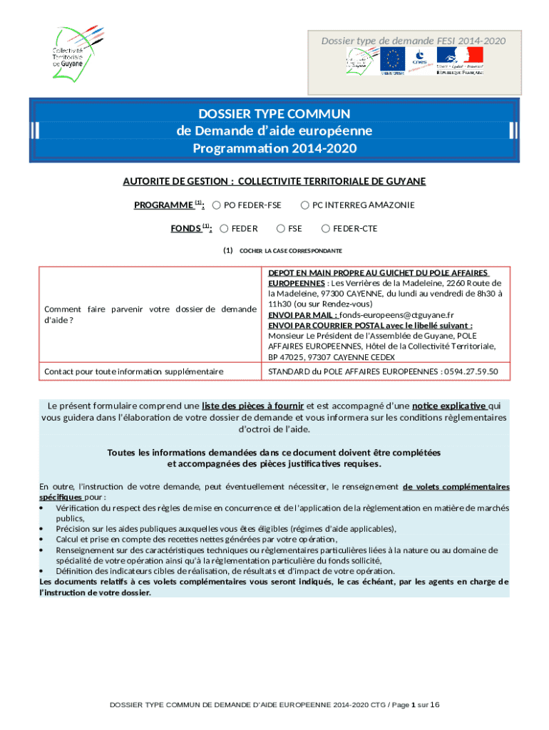 Template notice explicative du dossier type commun de demande d' ... instructions