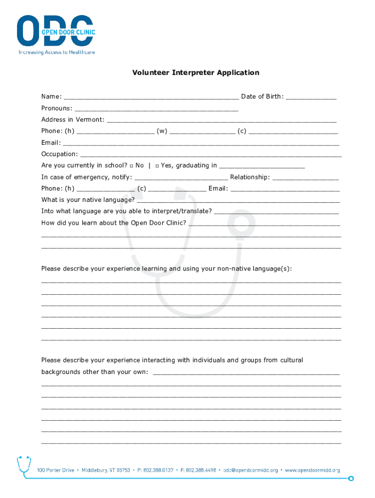 Apply now for the Volunteer Interpreter position at Open Door Clinic. Share your language skills and cultural experiences to make a difference.