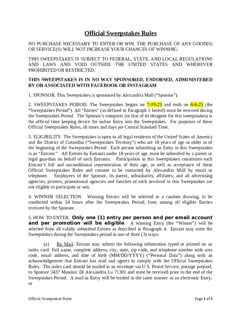 Official Sweepstakes Rules template instructions