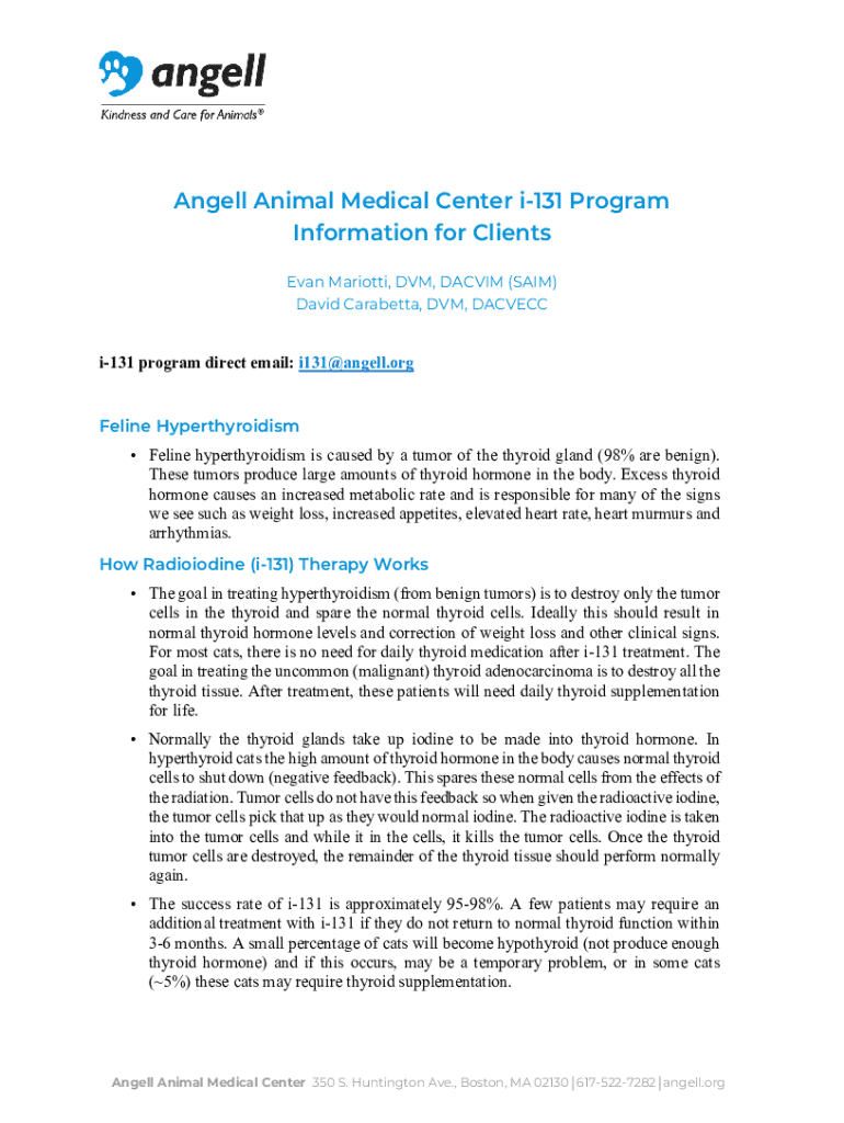 Get the free Angell Animal Medical Center I-131 Program