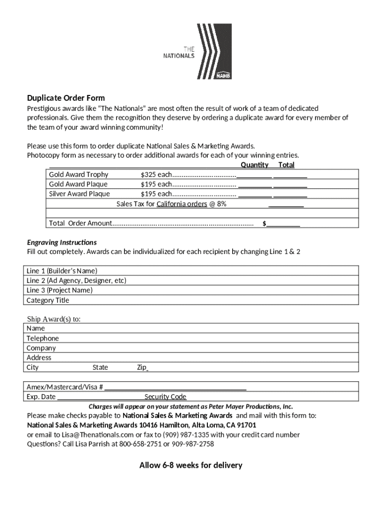 The Duplicate Order is a fillable form in MS Word extension that should be submitted to the relevant address to provide some information. It must be completed and signed, which may be done in hard copy, or by using a particular software such as PDFfiller. This tool helps to complete any PDF or Word document directly in your browser, customize it depending on your requirements and put a legally-binding e-signature. Right after completion, user can send the Duplicate Order to the relevant recipient, or multiple individuals via email or fax. The template is printable too thanks to PDFfiller feature and options offered for printing out adjustment. Both in electronic and physical appearance, your form will have a clean and professional look. Also you can turn it into a template for later, so you don't need to create a new file over and over. All you need to do is to edit the ready template.