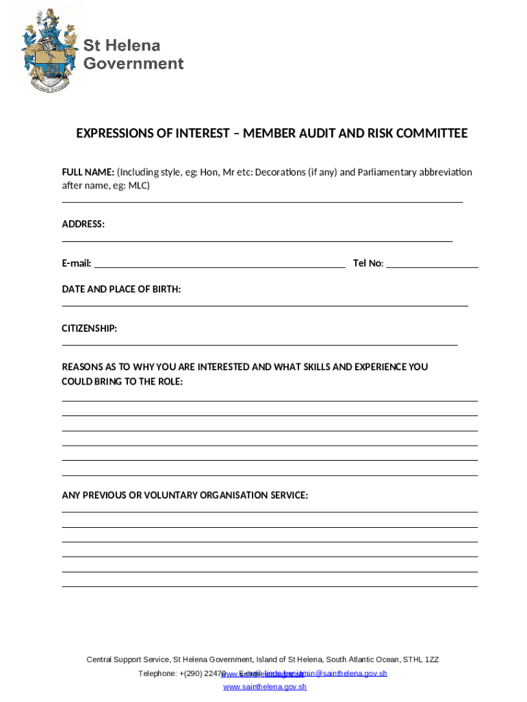 Template Expressions of Interest - Member Audit and Risk Committee instructions