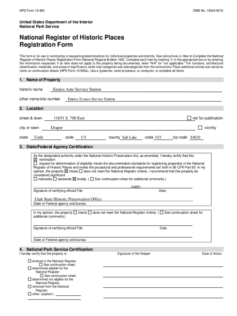 NPS Form 10900OMB No. 100240018United States Department of the Interior National Park ServiceNational Register of Historic Places Registration Form This form is for use in nominating or requesting