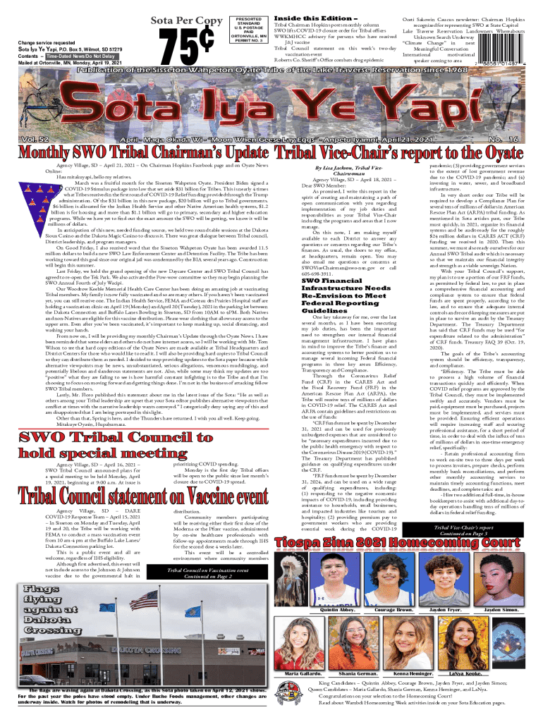 Mailed at Eatonville, MN, Monday, April 19, 2021PRESORTED