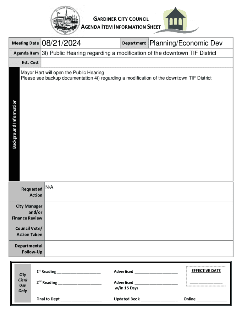 Get the free Gardiner City Council Meeting Agenda Item Information Sheet