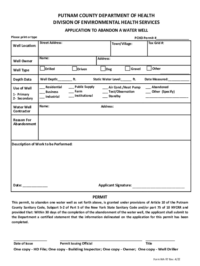 Get the free application to abandon a water well