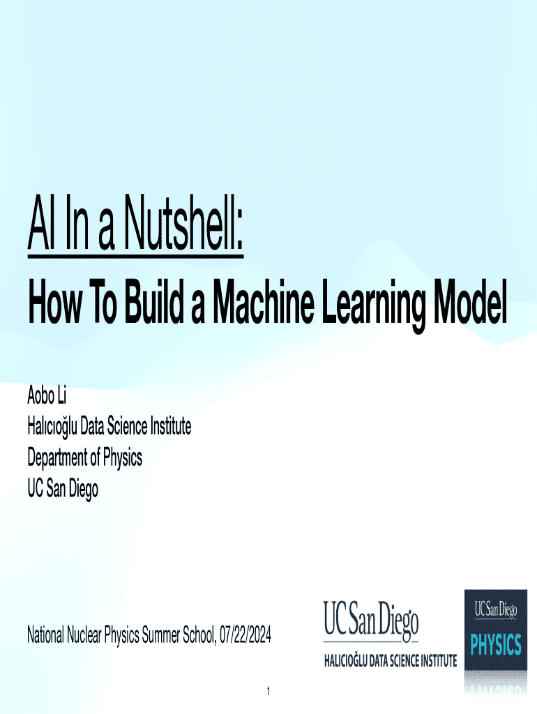 AI In a Nutshell:How To Build a Machine Learning Model Aobo Li Halcolu Data Science Institute Department of Physics UC San DiegoNational Nuclear Physics Summer School, 07/22/2024 1Course Objectives