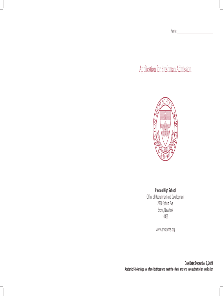 Apply for freshman admission to Preston High School, Bronx, NY, and learn about scholarships and grants offered for academic excellence and family connections.