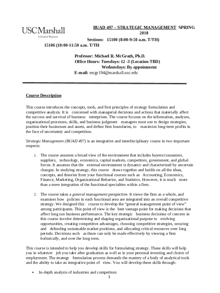 Instructions for the form Buad 497 – Strategic Management - web-app usc
