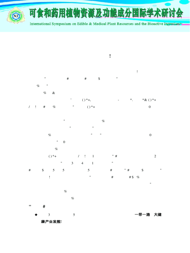 6th International Symposium on Edible & Medical Plant Resources and the Bioactive Ingredients (First Circular) The International Symposium on Edible & Medical Plant Resources and the Bioactive Ingredients,