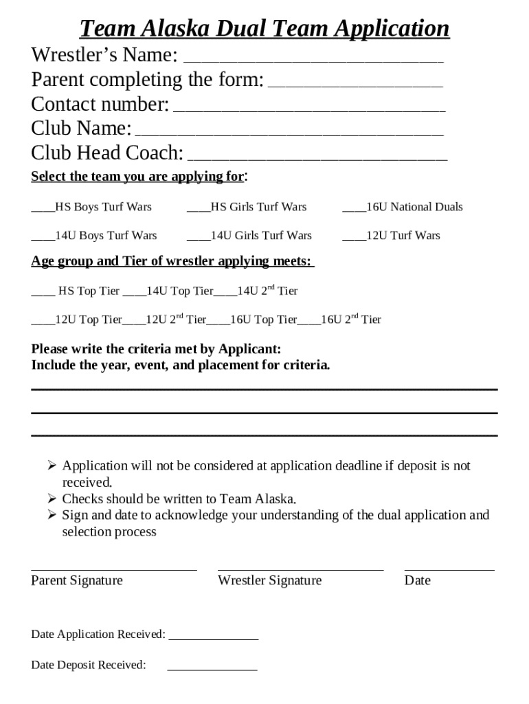 Frequently asked questions about the form Team Alaska Dual Team Application