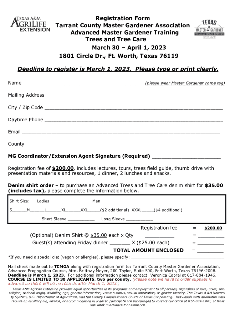 Register for the Advanced Master Gardener Training on Trees and Tree Care from March 30-April 1, 2023 in Fort Worth, TX. Enjoy lectures, tours, and meals.