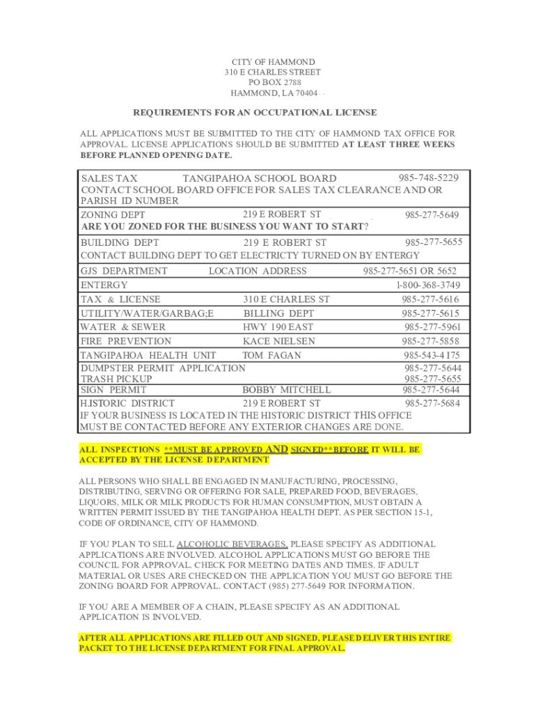 Discover the essential steps for obtaining an occupational license in Hammond, LA, including zoning, permits, and inspections required to start your business.