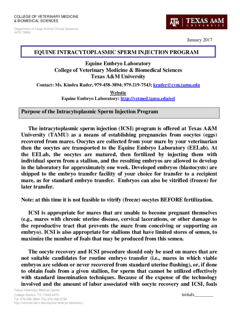Get the free Intracytoplasmic Sperm Injection Contract - vetmed tamu