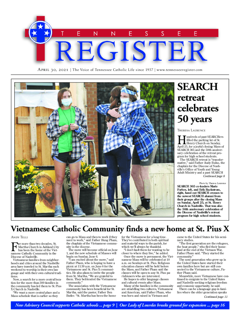 April 30, 2021Tennessee Register 1April 30, 2021| The Voice of Tennessee Catholic Life since 1937 | www.tennesseeregister.comSEARCH retreat celebrates 50 years Theresa LaurenceHundreds of past SEARCHers