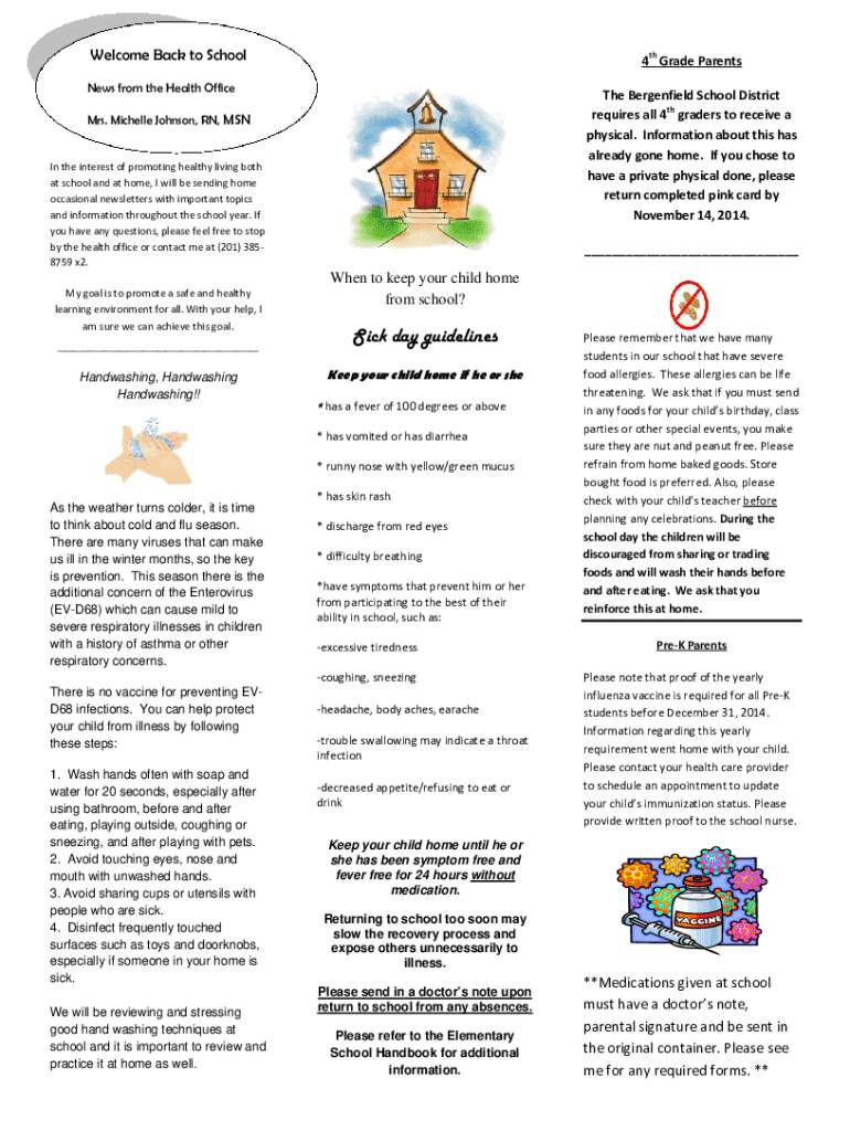 Welcome Back to School4th Grade Partners from the Health Office Bergen field School District
