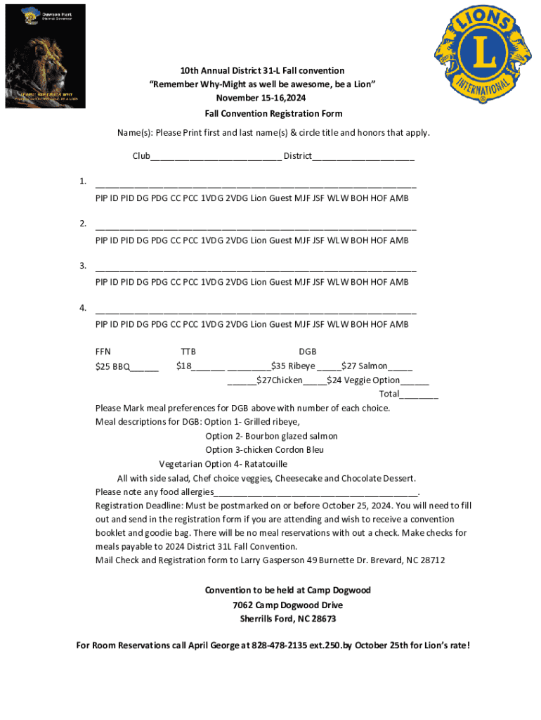 Register for the 10th Annual District 31-L Fall Convention 2024 in Sherrill Ford, NC. Secure your meal and goodie bag by registering before October 25.