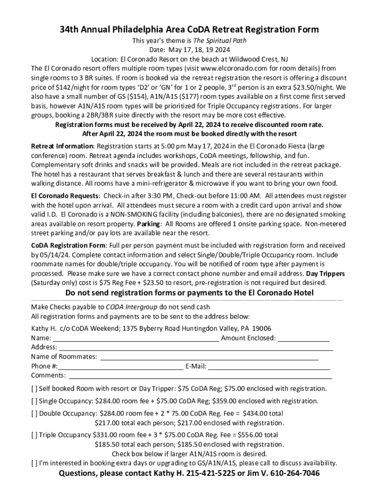 Get the free Coda Retreat Registration Form