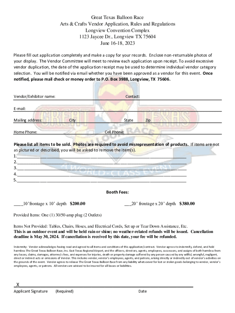 Get the free Great Texas Balloon Race Arts & Crafts Vendor Application