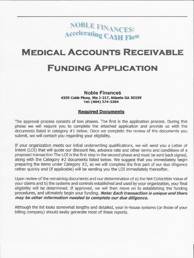Complete the Noble Finances application for medical accounts funding. Submit required documents for eligibility review and funding procedures.