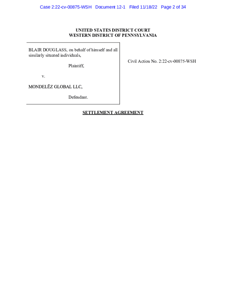 Get the free Settlement Agreement