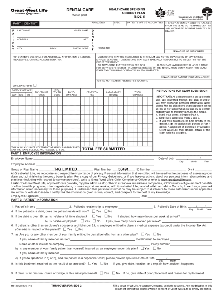 Get the free Dentalcare Healthcare Spending Account Plan