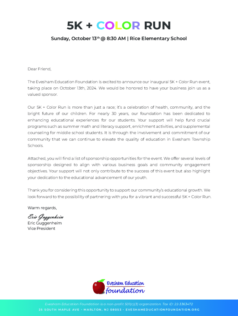 Get the free Register For Evesham Education Foundation 5K + Color Run