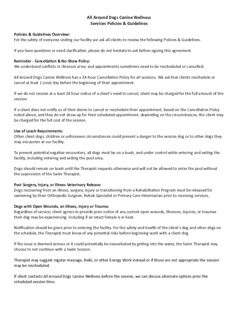 Get the free All Around Dogs Canine Wellness Services Policies & Guidelines